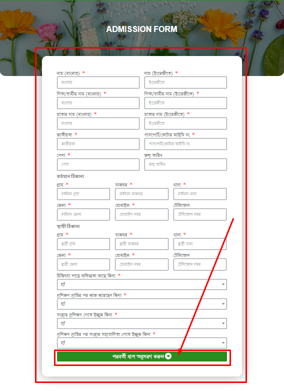 নির্ভুল তথ্য দিয়ে পুরো ফরম পূর্ণ করুন। তারপর পরবর্তী ধাপ অনুসরণ করুন বাটনে ক্লিক করুন।